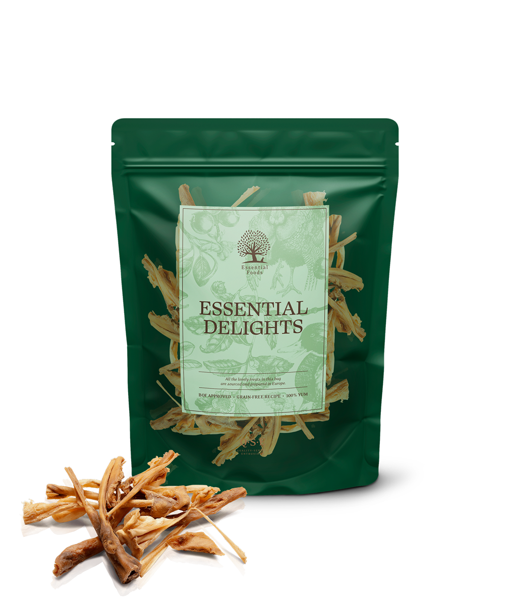 En lammevariant af vores uhyggelige populære ESSENTIALS SKIN DELIGHTS. Mindre i størrelsen end de originale SKIN DELIGHTS - Oplagt som tygge-hygge snack til hunde op til 10kg, men vil naturligvis være et hit hos alle! 100% tørret lammehud, og som vores øvrige lækre lamme snacks opdrættet og tilberedt i Europa.